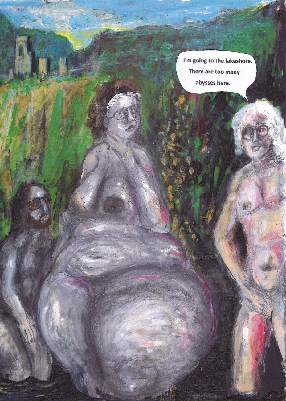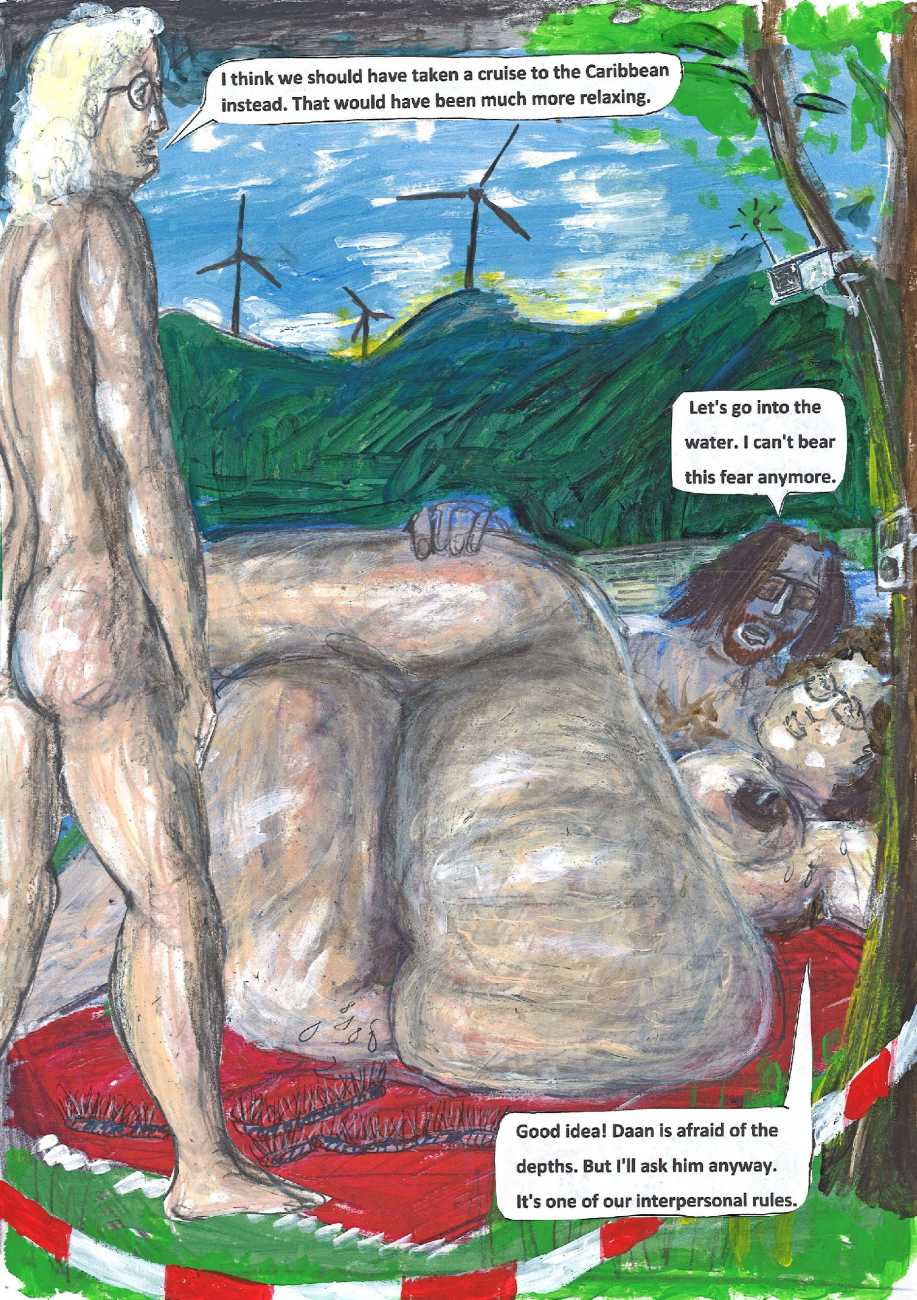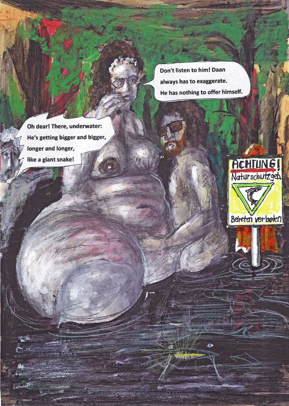 A majority of my images belong to graphic novels. Here too I am a blatant outsider, because my stories – mostly on historical subjects – follow the old tradition of picture stories. Thematically I process classic material such as Boccaccio’s Decameron, stories from the Bible, Lady Chatterley’s Lover, and the life of the philosopher Rousseau, but I have also created my own narratives such as the abbey on the banks of the Meuse or the Pygmalion project. Over time I have created well over 1,200 illustrations, and will continue to add new ones as long as I don’t find myself in a deep, sad hole again or terrible political events throw me off course.