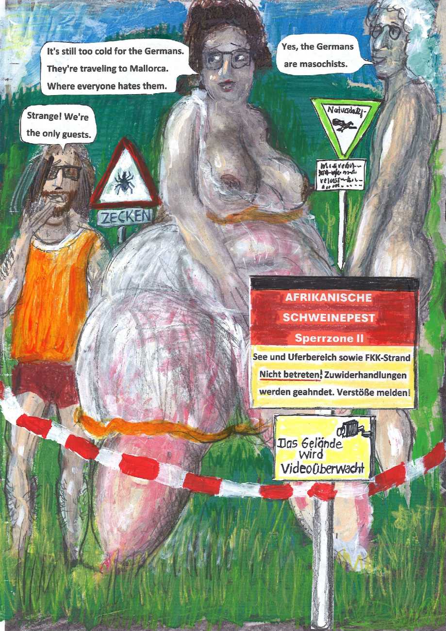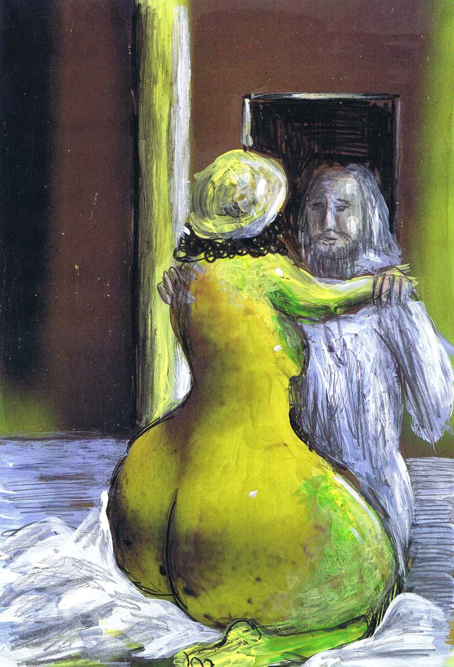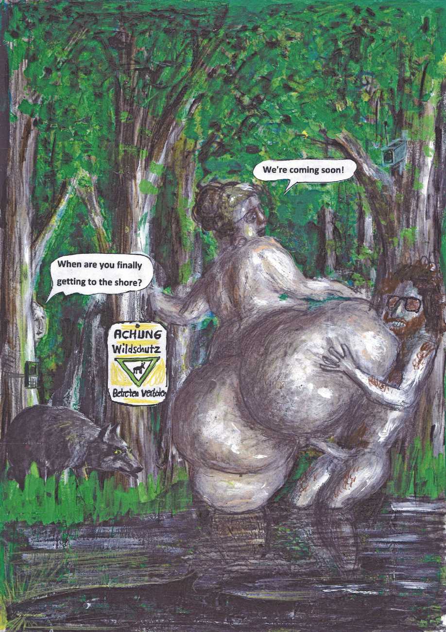 A majority of my images belong to graphic novels. Here too I am a blatant outsider, because my stories – mostly on historical subjects – follow the old tradition of picture stories. Thematically I process classic material such as Boccaccio’s Decameron, stories from the Bible, Lady Chatterley’s Lover, and the life of the philosopher Rousseau, but I have also created my own narratives such as the abbey on the banks of the Meuse or the Pygmalion project. Over time I have created well over 1,200 illustrations, and will continue to add new ones as long as I don’t find myself in a deep, sad hole again or terrible political events throw me off course.