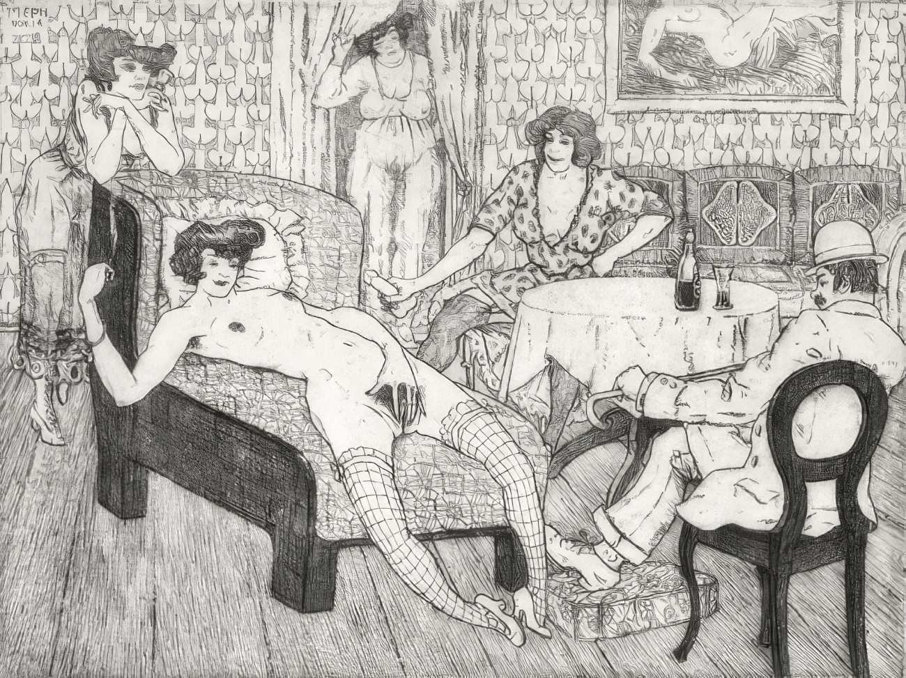 Philipp did not produce an extensive portfolio of erotic etchings, but those which have survived show both his absolute mastery of the medium and his fearlessness when it came to explicit imagery. And there is also a sense of humour, sometimes black humour, as in the last of the works shown here.