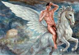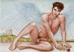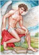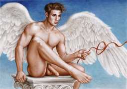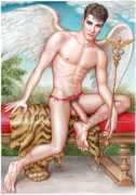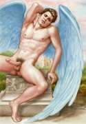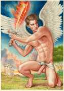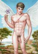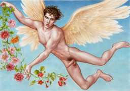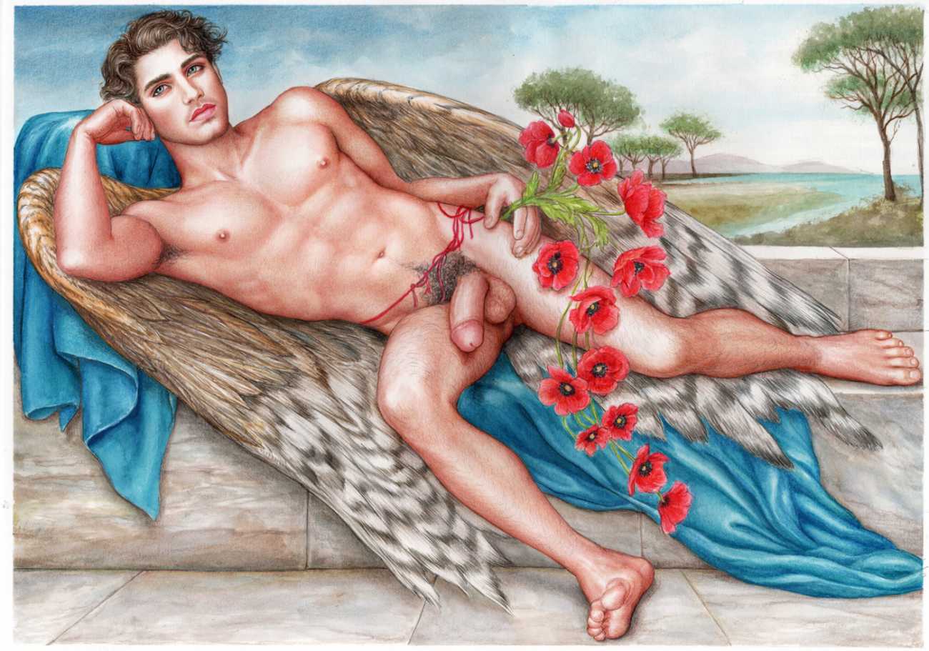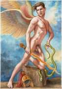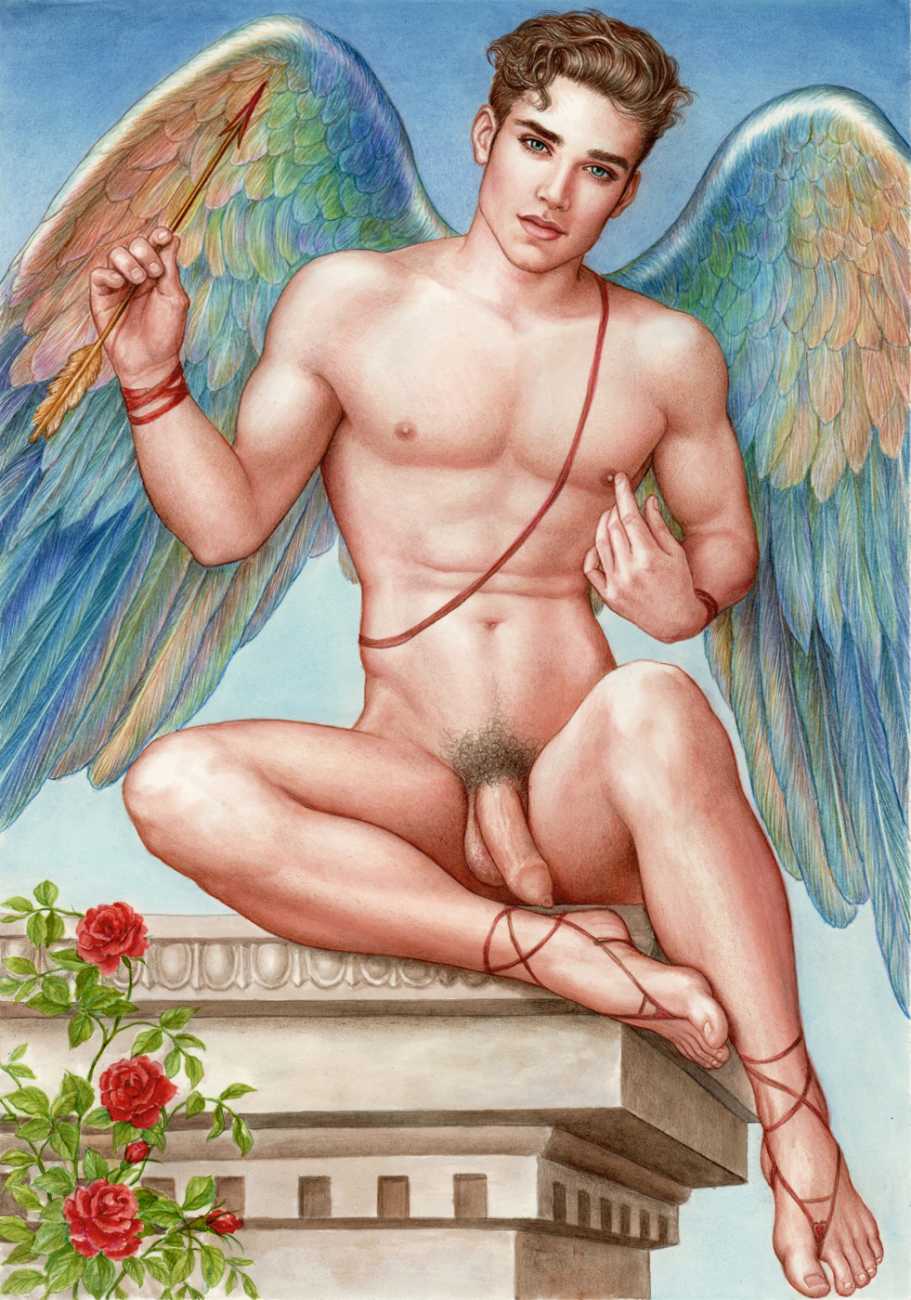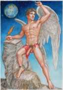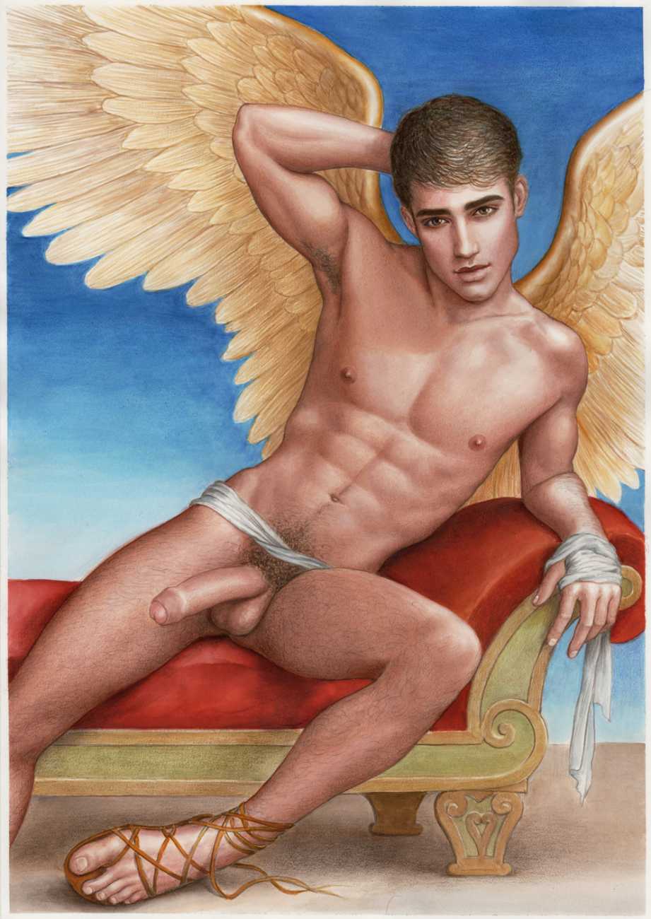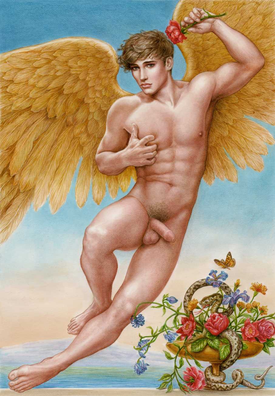 He portrays them with the same unconscious eroticism and sensual beauty of his mythological and historic characters, explaining that ‘we humans invoke them when we feel lost and helpless, seeking help or consolation from these beings of pure energy and wisdom, offering intercession with the supreme divine’.