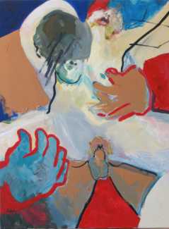 Rika Deryckere’s paintings of naked bodies are certainly colourful and powerful, full of movement and energy. Many are overtly sensual, if not sexual, an aspect of her work not often mentioned, possibly because the artist herself is quite private about this aspect of her work, partly as a result of the reticence of her audience to acknowledge the fact.
