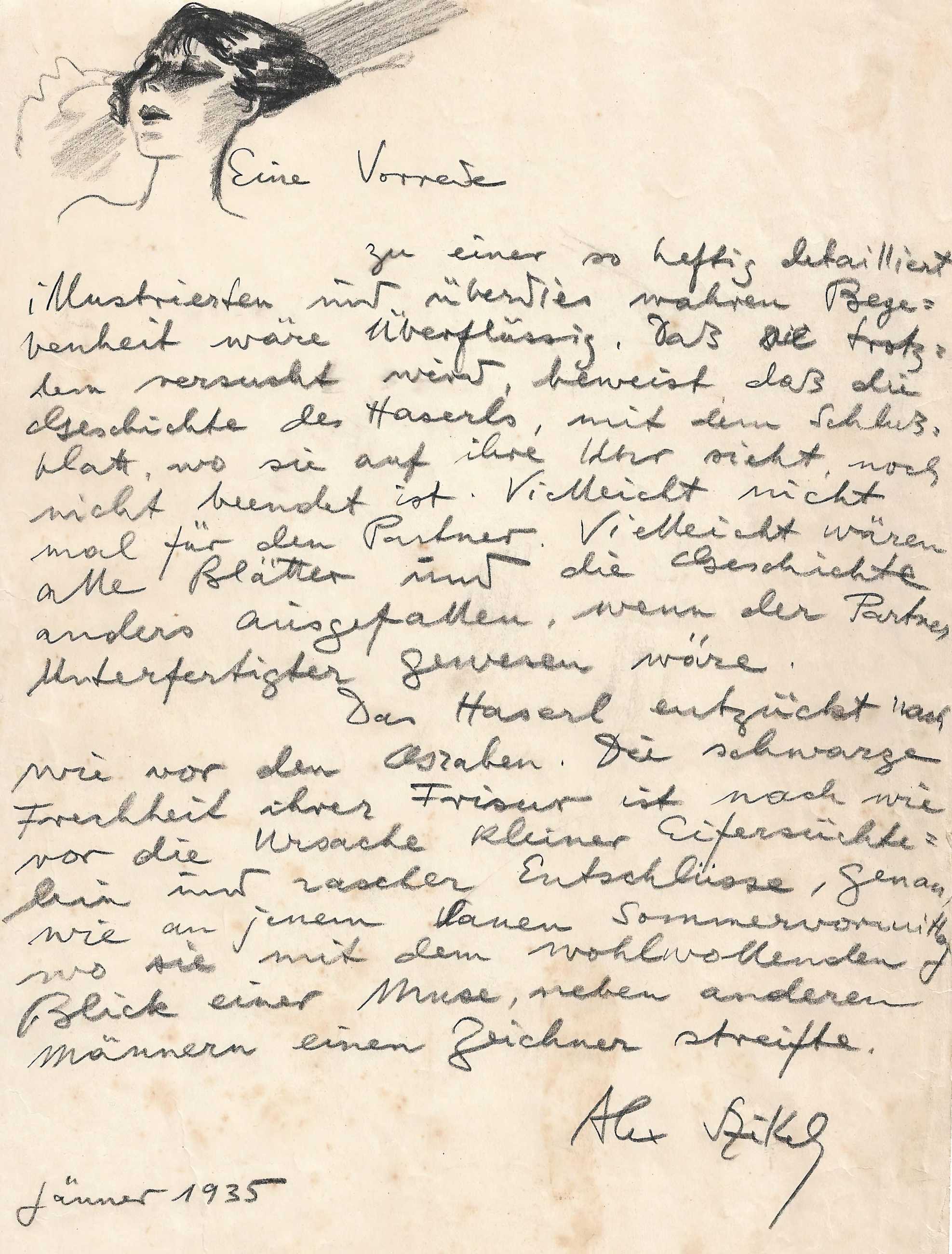 For such a detailed and vividly illustrated event, obviously so clearly remembered, a preface is really rather superfluous. The only possible reason for attempting it is to show that this tale of Haserl, with its final page where she has not yet grown anxious, perhaps not even about her partner, might have unfolded differently if that partner had been more completely available.