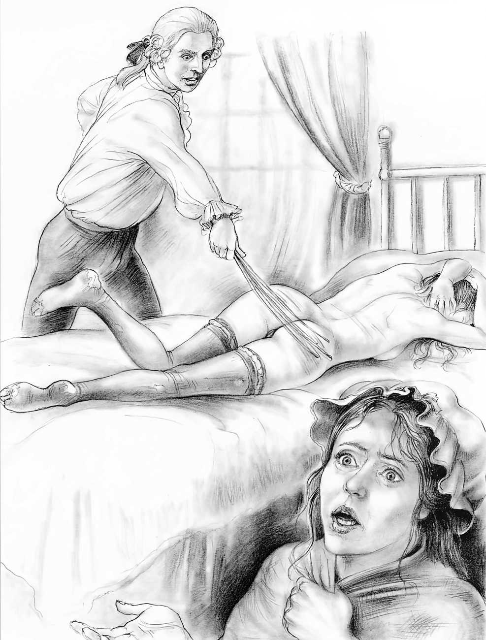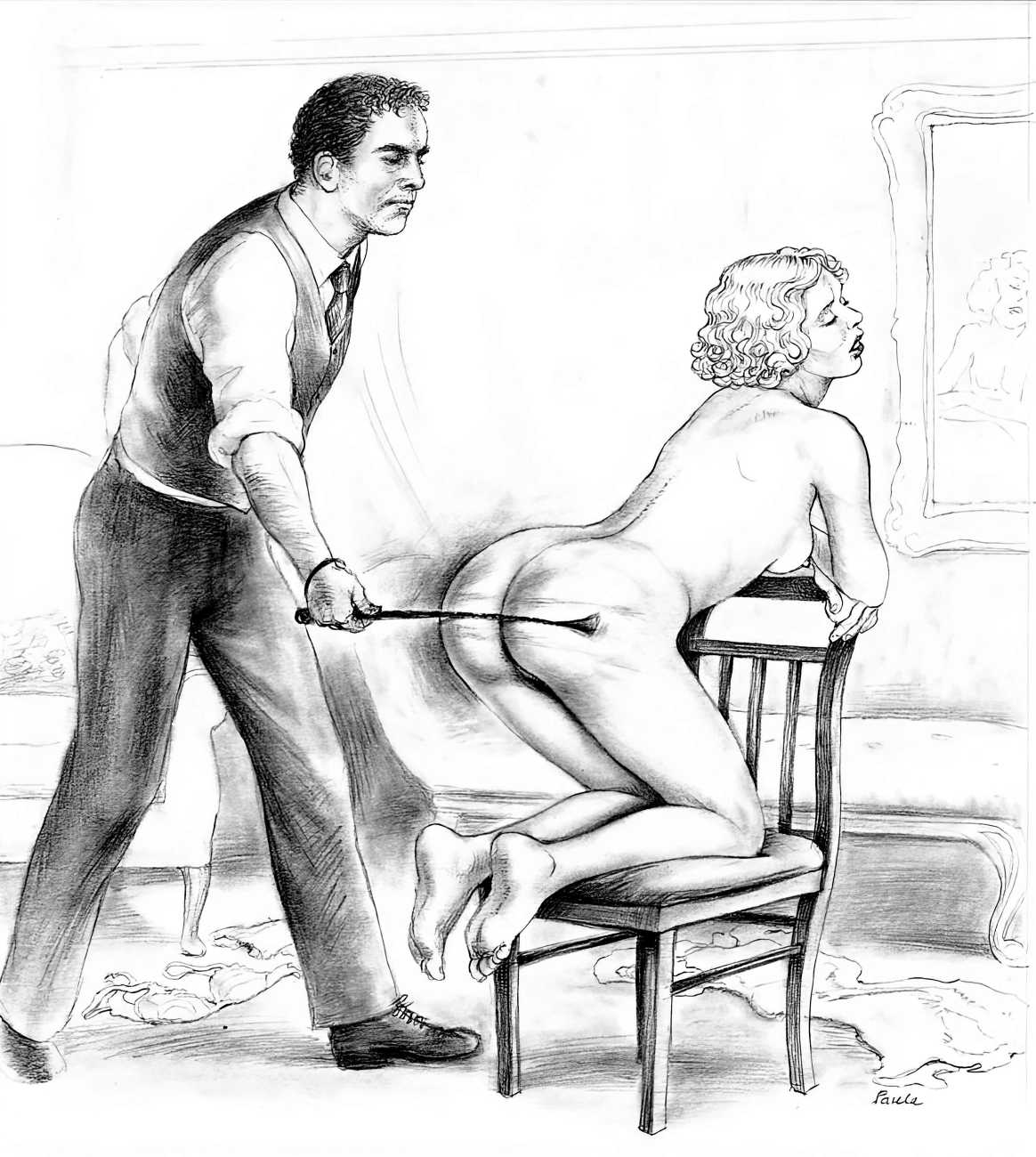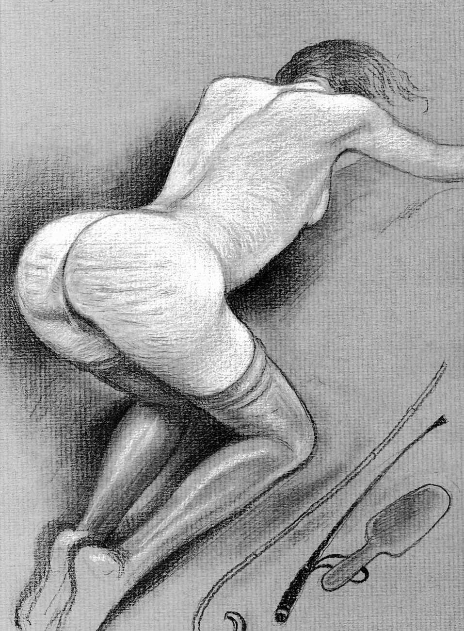 So what is it that exerts such a powerful erotic force in these marvellous drawings? The most obvious explanation is the sense of delicious anticipation and those moments of sweet surrender that occur when we give ourselves over, trusting yet apprehensive, to the whims and fancies of the dominant partner in our relationship. The punishment itself and its attendant pain can be, through direct physical stimulation, another path to sexual gratification.