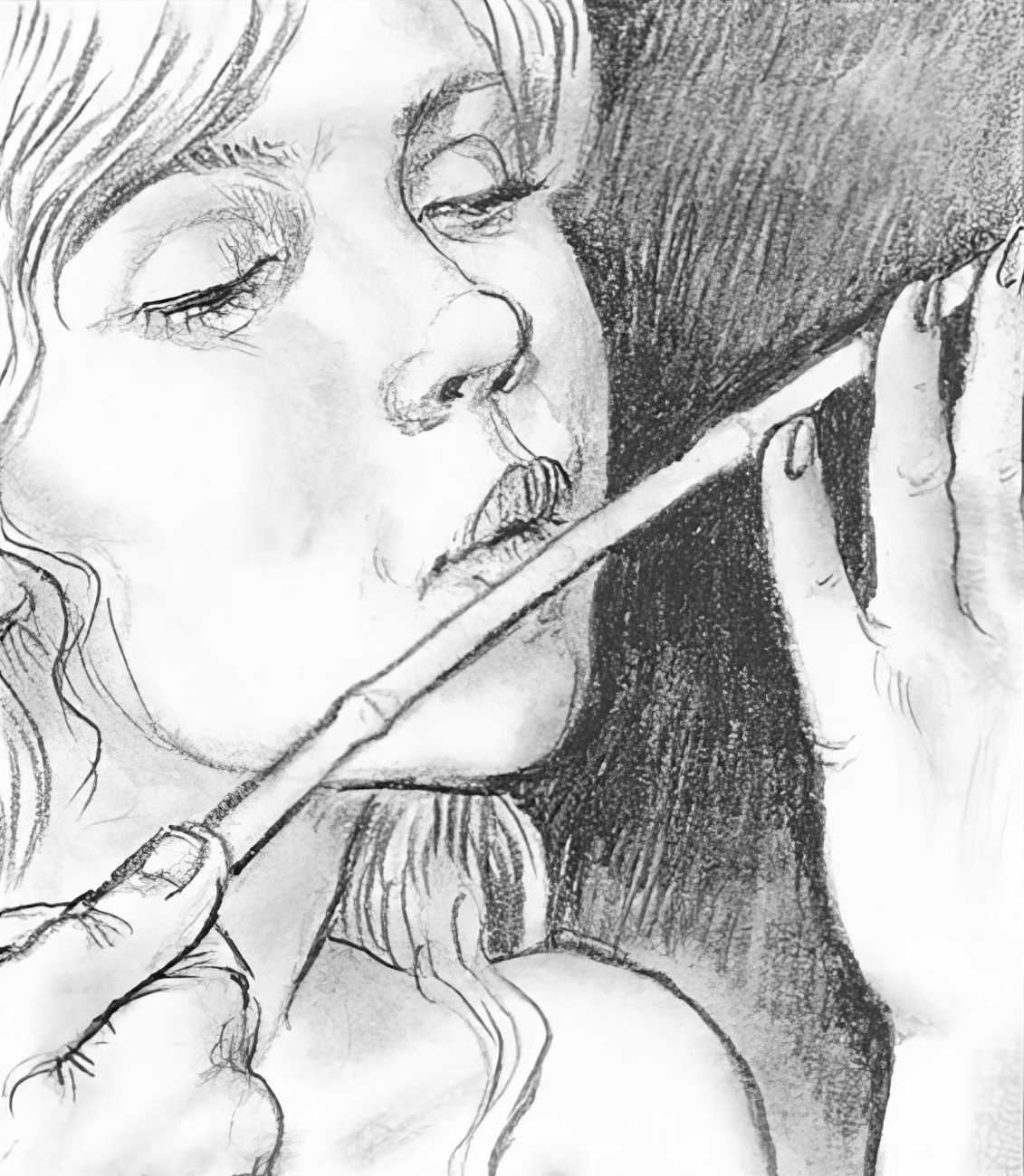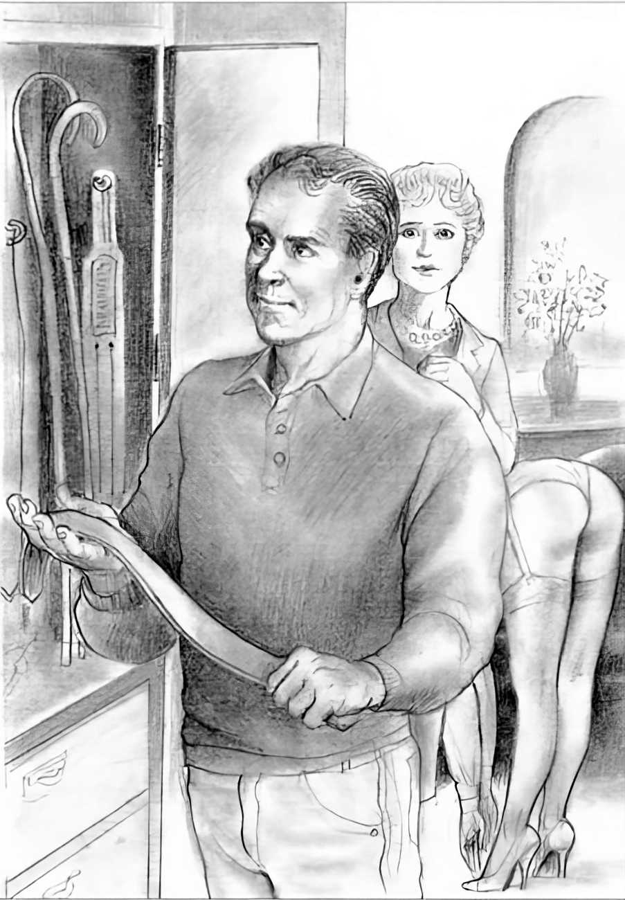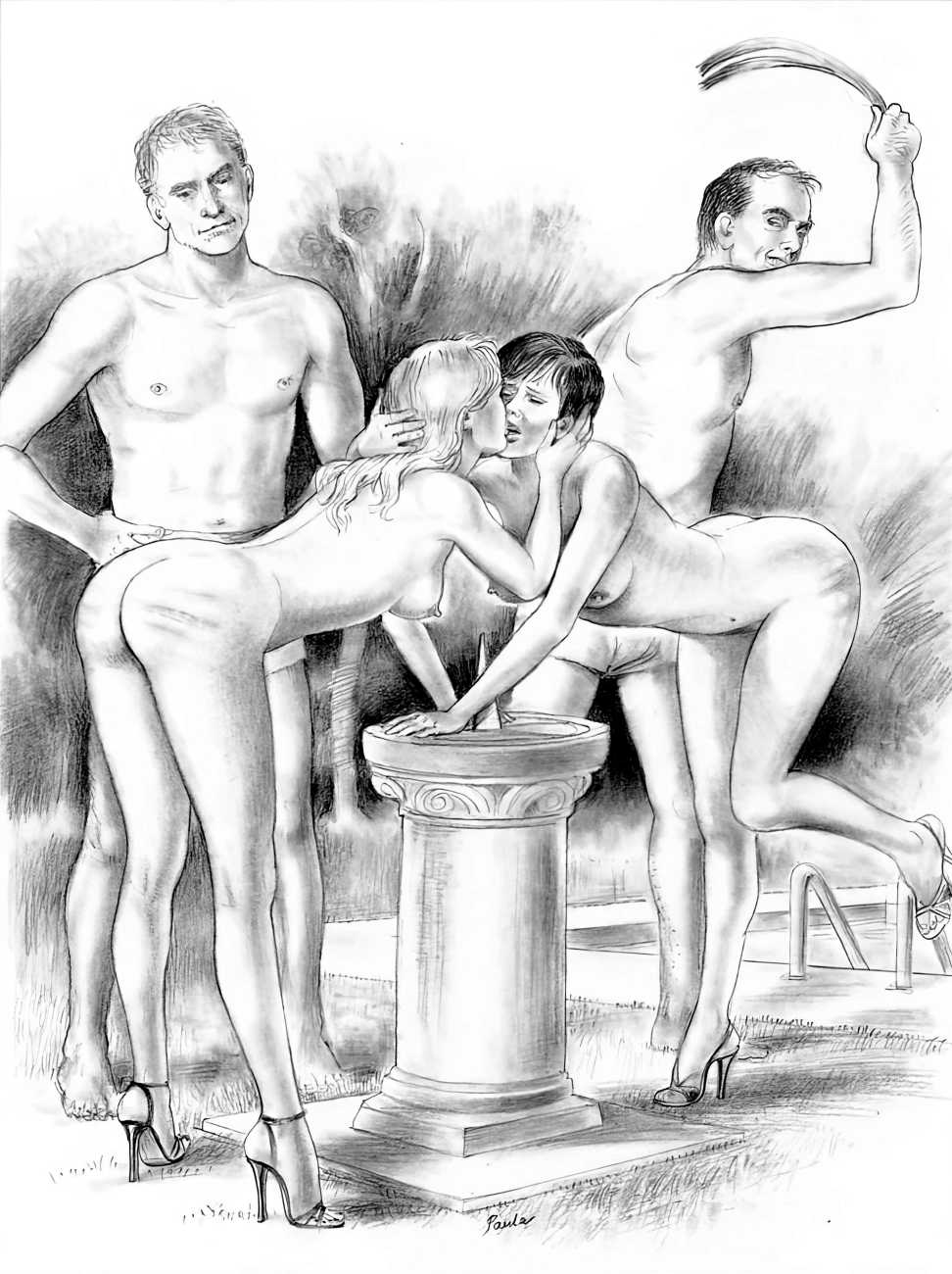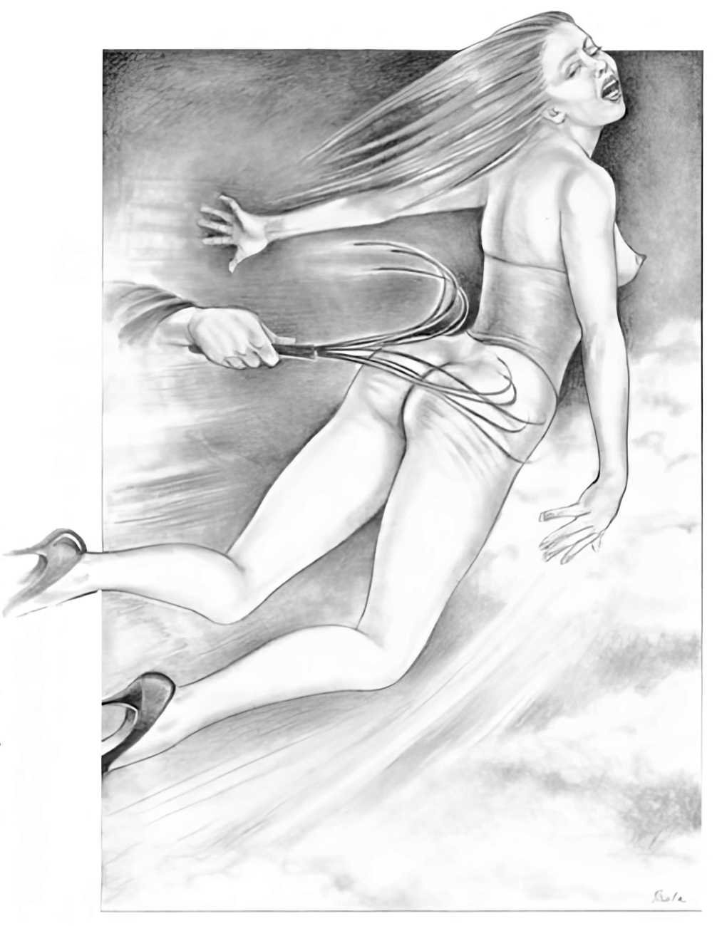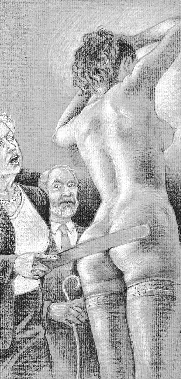 Her drawings, unashamedly erotic and full of the energies and emotions of sex, appeal to a sophisticated audience. This audience is knowledgeable about the world of sadomasochism and corporal punishment and appreciative of the way her realistic, emotive style carries them effortlessly into a realm of fantasy that is as rare as it is wonderful. But they would be less able to escape to this world were it not for, in addition to an extraordinary imagination, the fine draughtsmanship and the innate sense of design and composition that is always present in Paula’s art. In this book we are fortunate enough to find a collection of some of her most outstanding work that portrays the sexual fetish of corporal punishment, or CP. In Painful Pleasures: The Erotic Art of Lynn Paula Russell, the focus is on her drawings commissioned to illustrate Februs, and in some cases, Janus, its sister magazine.