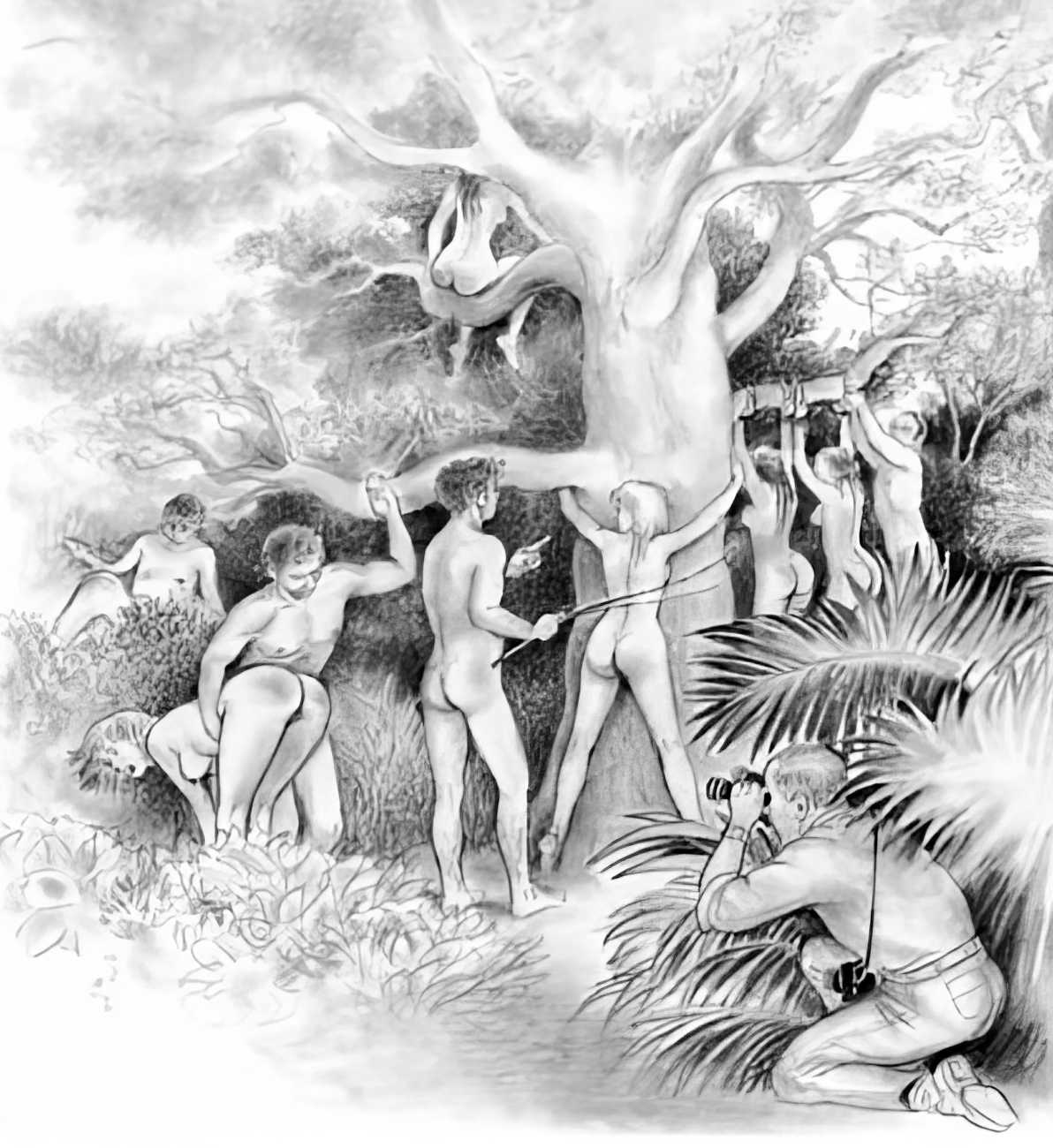 An important aspect of Paula’s work is more experimental and concerned with exploring the connection between human sexuality and Nature: exquisite, colour-drenched drawings where sensual bodies become landscapes and vice versa. These ‘bodyscapes’ are wonderful images, but they are not dealt with in this book: they feature in two earlier titles published by EPS, The Illustrative Art of Lynn Paula Russsell and A Sexual Odyssey. Yet another area that is more than adequately covered elsewhere is her excellent ‘adult comic’ work: Sabina I and Sabina II, two further EPS publications.