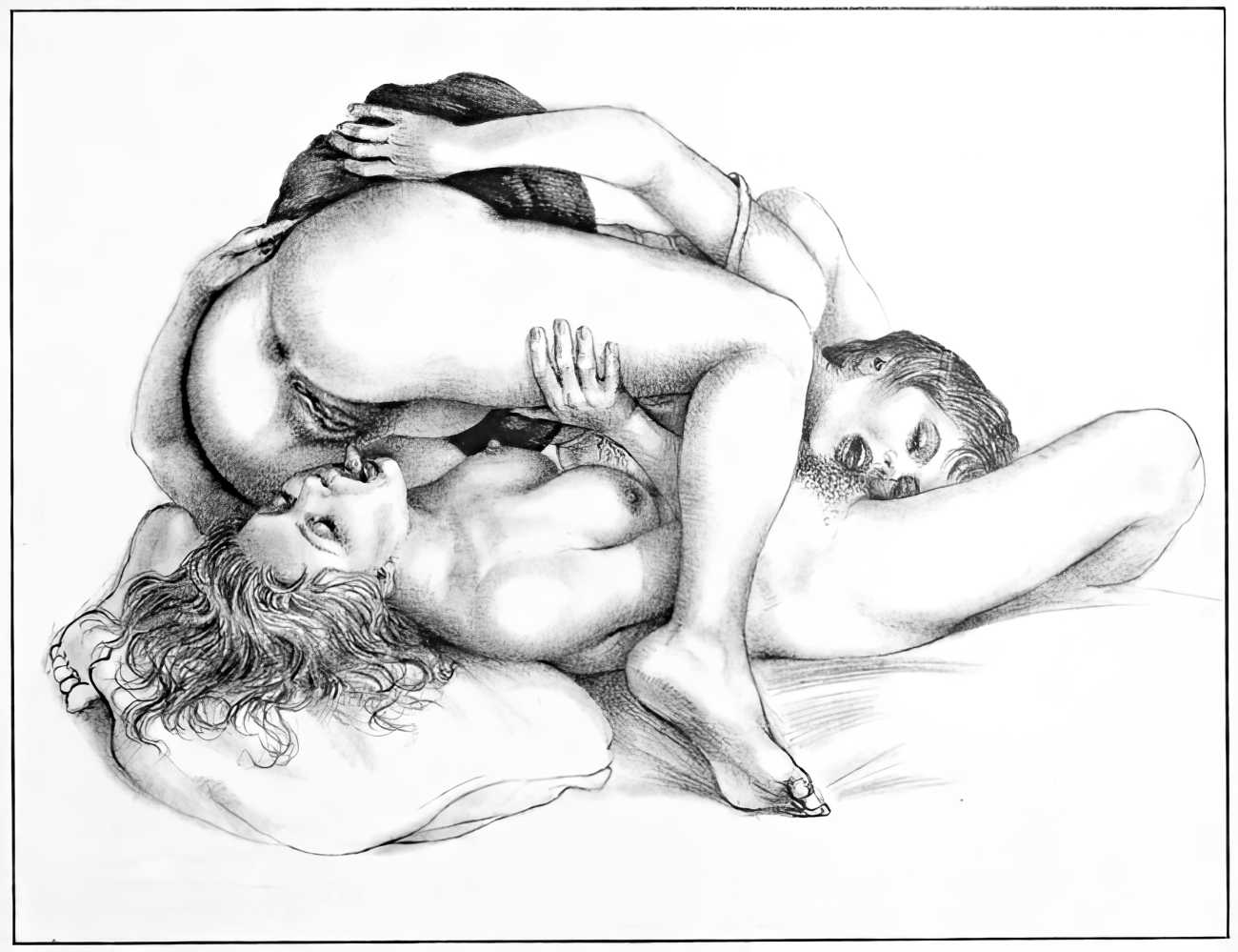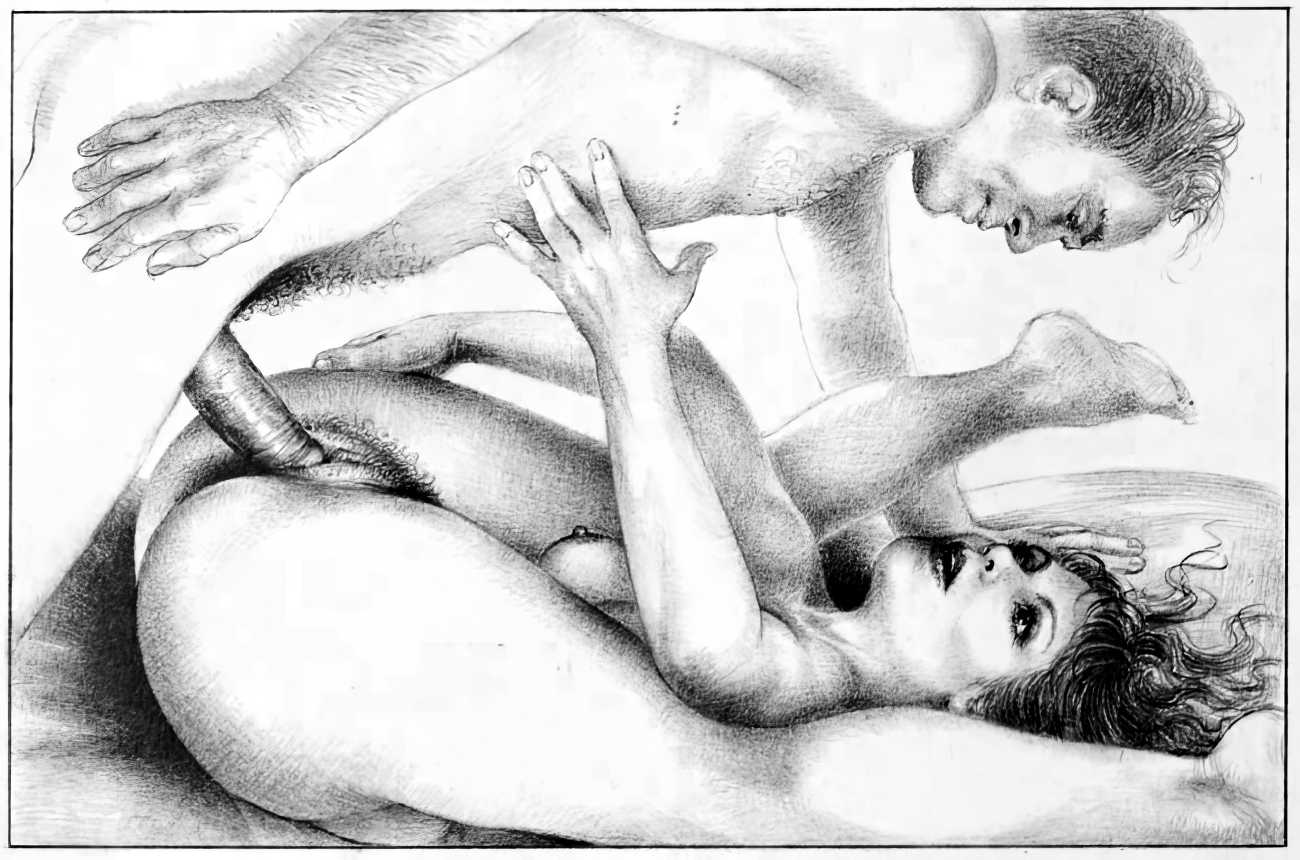 In all honesty the EPS version is rather a mishmash of text, photographs and artwork, but to its credit it was courageous enough to publish photographs – and include the Lynn Paula Russell drawings shown here – depicting believably real people engaged in believably real sex. It helped that The Essential Kama Sutra was a subscriber-only volume which did not have to consider the constraints of bookshop exposure.