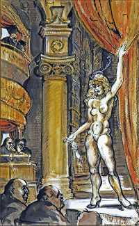 The drawings of burlesque and vaudeville acts Marsh made in the 1920s for the New York Daily News are among the first of his many images of popular theatre. The burlesque that Marsh captured can be described as raunchy and vulgar, but also comedic and satiric. Marsh’s drawings and paintings depict chorus girls, clowns, theatre goers and strippers. Burlesque was the theatre of the common people; it expressed the humour and fantasies of the poor, the old, and the ill-favoured.