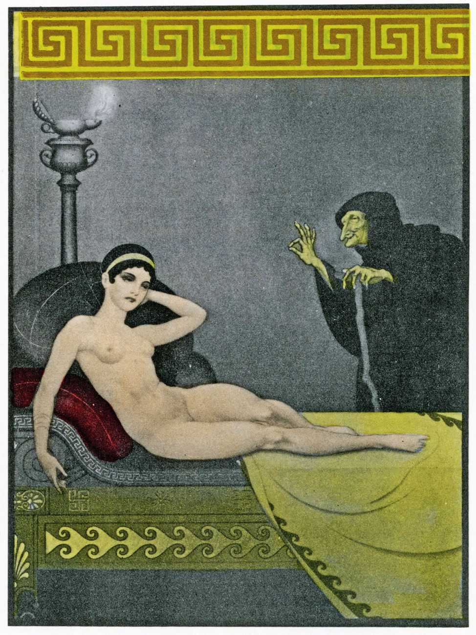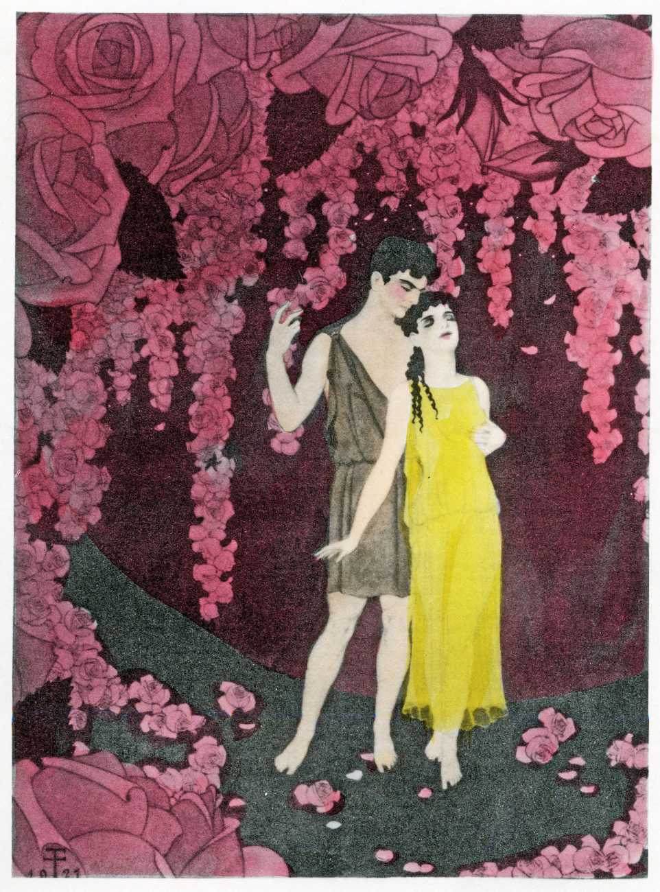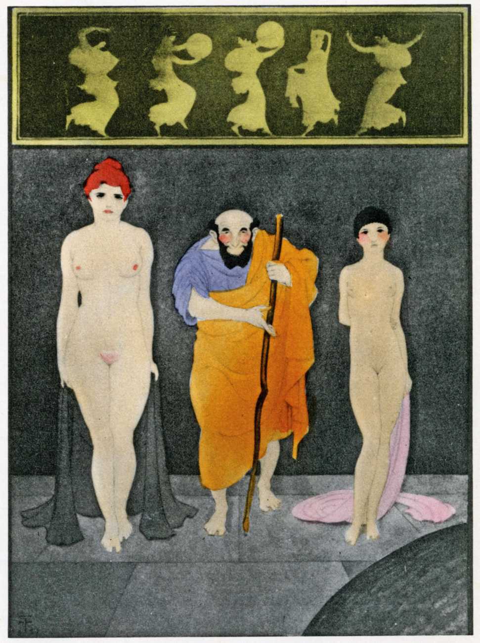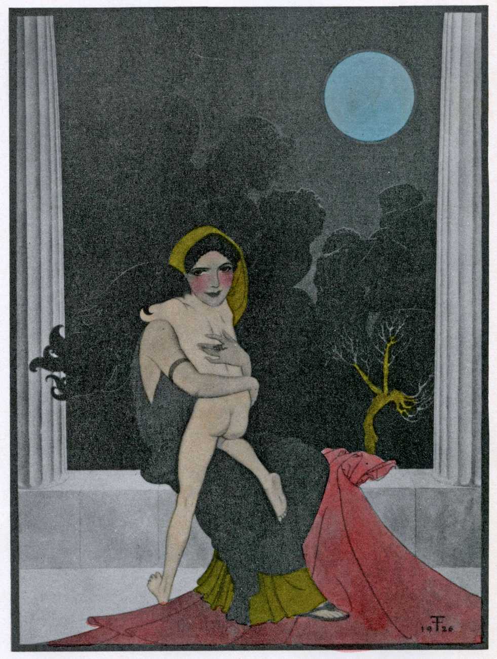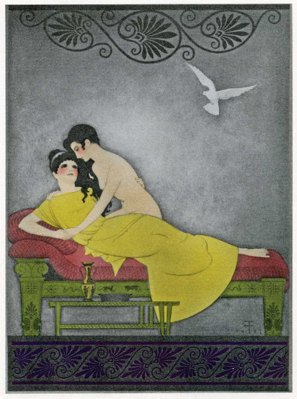 This luxury edition of The Songs of Bilitis was commissioned by The Pierre Louÿs Society, a small US private press and subscription society that issued limited-edition English printings of Pierre Louÿs’ works in the mid- to late-1920s. It clearly recognised the appropriateness of commissioning an artist schooled in the European tradition and now living in New York, and though the quality of the printing does not do full justice to the subtle colouring of Franz Felix’s paintings, especially in the darker tones, the originality and modernity of the plates is still striking. The Songs of Bilitis was produced in a limited edition of 933 copies. The translator was Mitchell Starrett Buck (1887–1959), who also translated several other Pierre Louÿs works for American publishers.