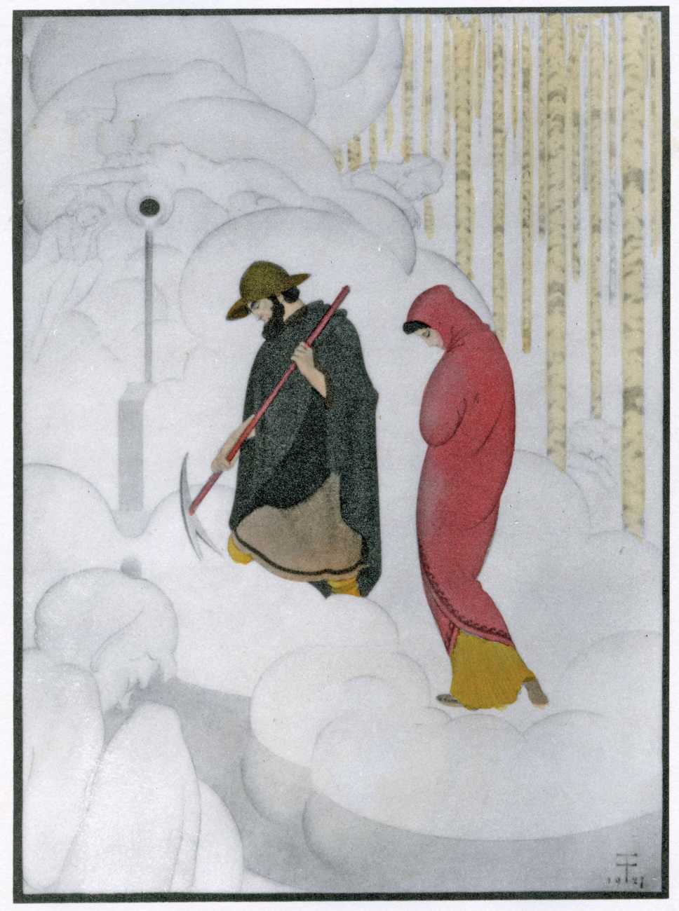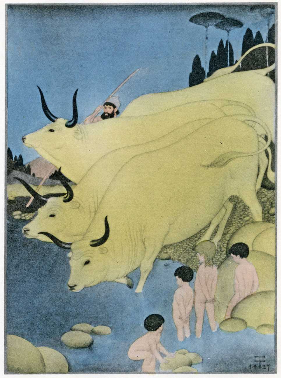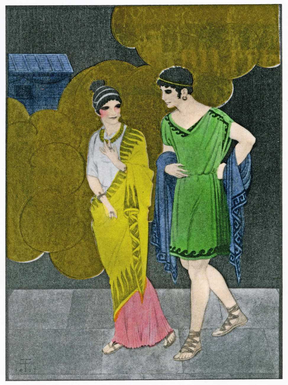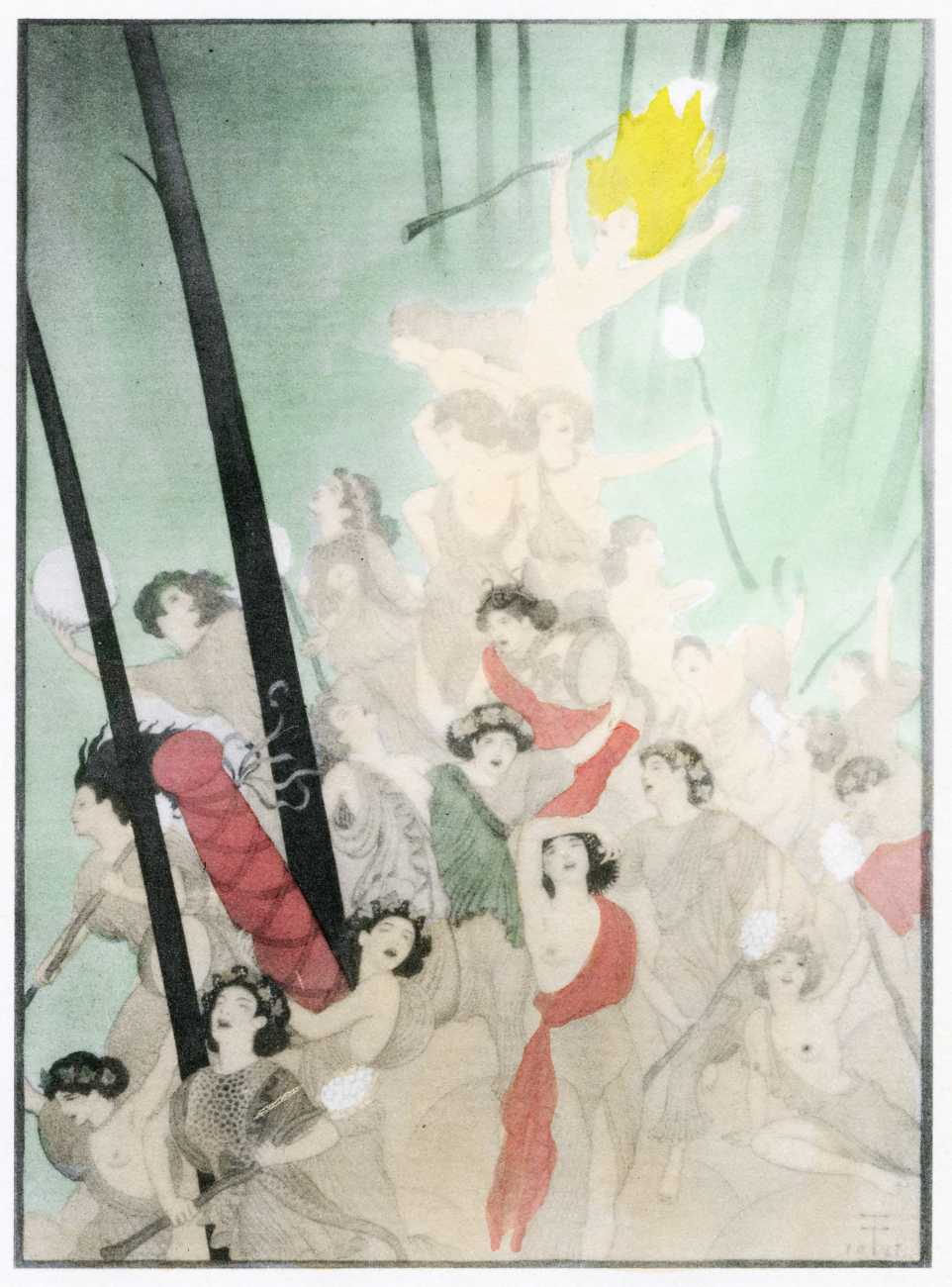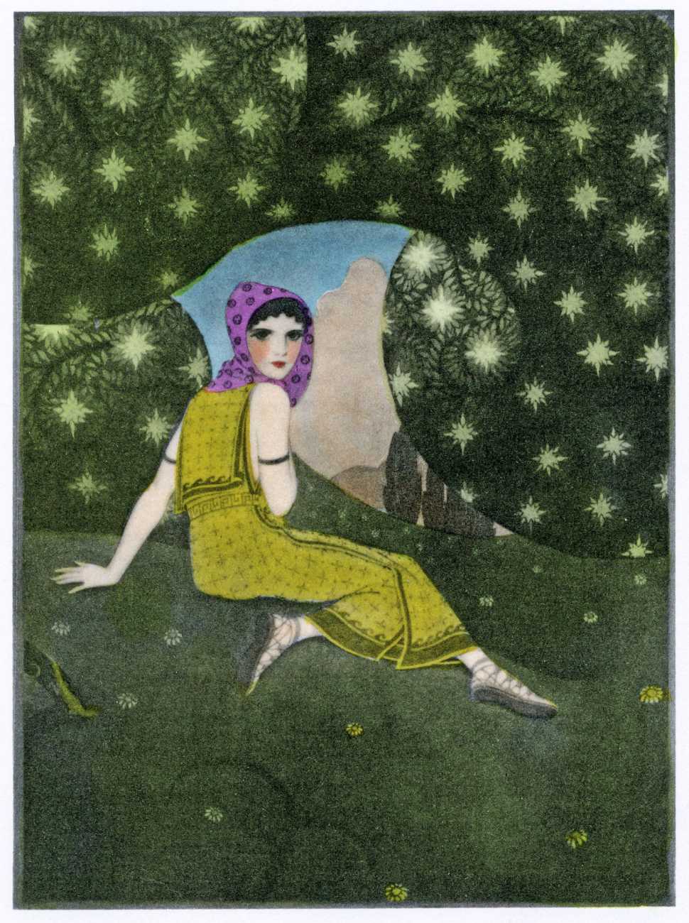 This luxury edition of The Songs of Bilitis was commissioned by The Pierre Louÿs Society, a small US private press and subscription society that issued limited-edition English printings of Pierre Louÿs’ works in the mid- to late-1920s. It clearly recognised the appropriateness of commissioning an artist schooled in the European tradition and now living in New York, and though the quality of the printing does not do full justice to the subtle colouring of Franz Felix’s paintings, especially in the darker tones, the originality and modernity of the plates is still striking. The Songs of Bilitis was produced in a limited edition of 933 copies. The translator was Mitchell Starrett Buck (1887–1959), who also translated several other Pierre Louÿs works for American publishers.