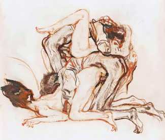 Putz’s surviving drawings also show that he was intimately interested in the more explicitly sexual and physical aspects of the human body, not just its artistic potential. Several portfolios include studies of couples and threesomes enjoying rampant sex, and women displaying their genitals and pissing. Most of these small explicit works which have survived are in private collections, and we are very grateful to Hans-Jürgen Döpp for these images; Hans-Jürgen, the compiler of many books on erotic art, curates the Venusberg online gallery and bookshop which you can find here.