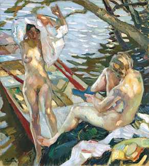 Leo Putz’s Badende (Bathers) form one of the most consistently realised themes in his oeuvre: small- to medium-scale oil canvases that place young women and girls in lakeside or garden settings where the human figure is inseparable from sun, water and foliage. These paintings appear repeatedly from the 1900s into the 1920s.