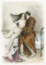 The French artist Georges Mouton was known in polite circles for his portraits and scenes of Algerian life, but for select clients he produced watercolours and small cards with lots of sexual congress, plus voyeurism, spanking, group sex and orgies. See his work now by clicking here.